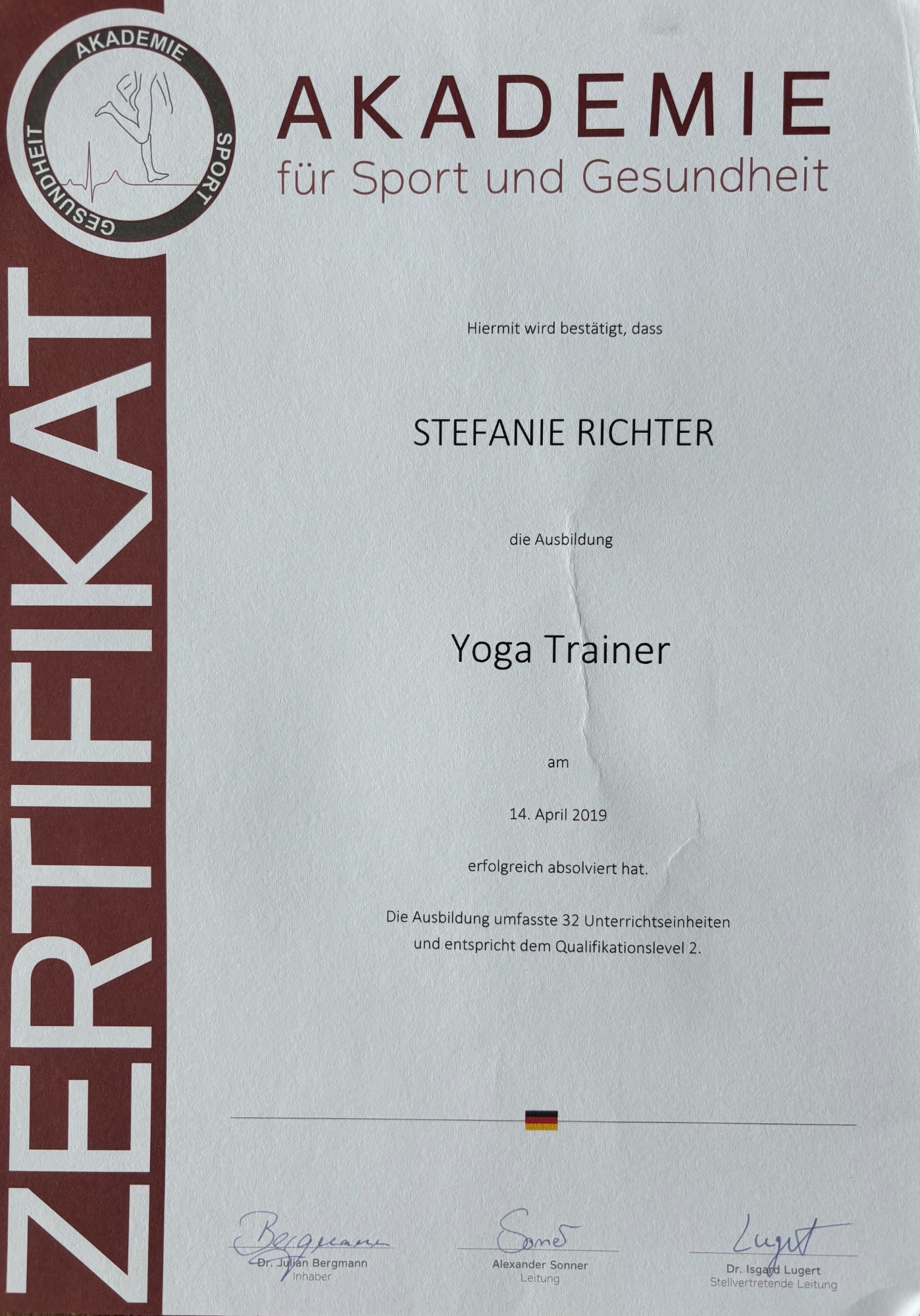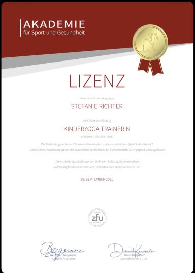 Leider findet sie ihr Zertifikat zur Zeit nicht. Wir fügen es ein, sobald es gefunden wurde. :)