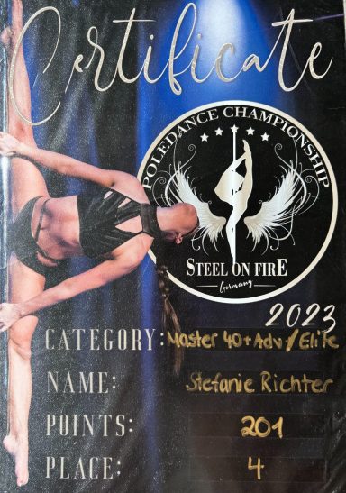 Seit 2015 bin ich im Pole Sport aktiv und unterrichtet seit 2019 all-Level-Kurse.
