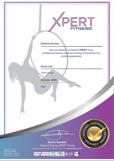 Leonie hat im Jahr 2019 die XPert Pole Fitness Level 1 & 2 Ausbildung absolviert.